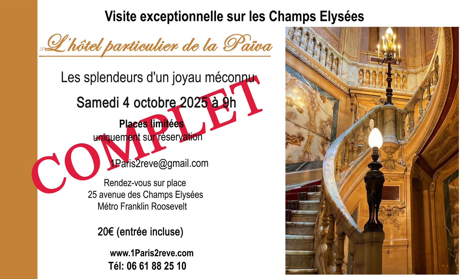 Contactez nous : 06 61 88 25 10 /1paris2reve@gmail.com